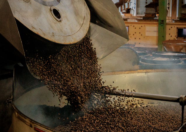 コーヒーの焙煎(ロースト)は、生豆に熱を加える工程のことです。焙煎前の生豆は淡い緑色をしており、コーヒーらしい味や香りはほとんどありません。生豆に熱を加えることで、私たちがよく知るコーヒー豆の姿や風味に変わります。
