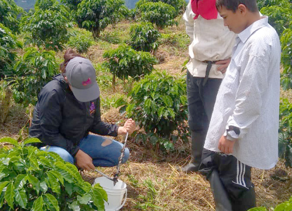 品質を大きく左右する土壌の改良に焦点を当て、より適切な分析をすることにしました。アンティオキアの9つの自治体にて土壌サンプルの採取を行い、生長に必要な要素34項目を調査したところ、105軒中、約40軒の農園の土壌に何らかの調整が必要なことがわかりました。