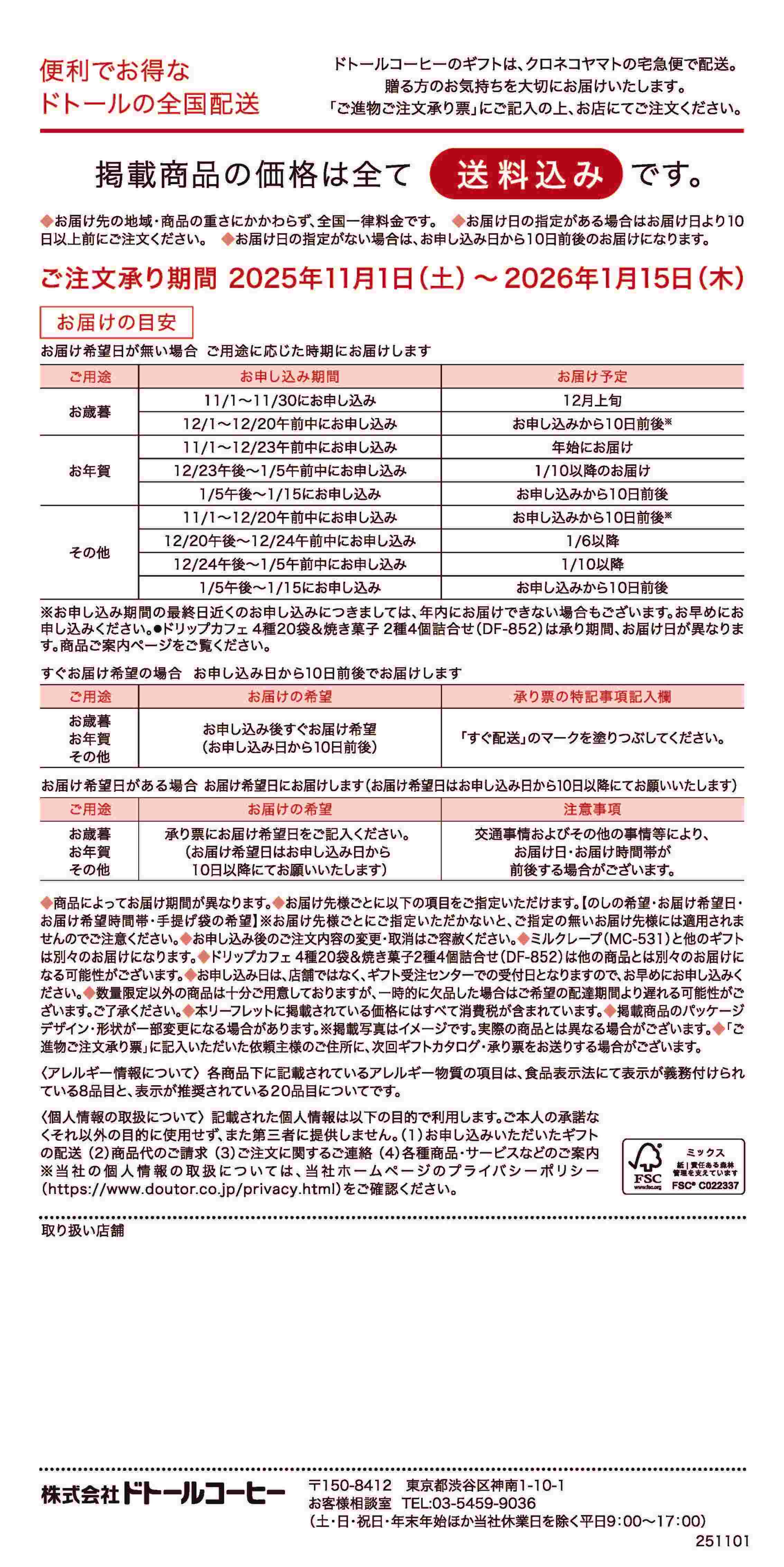 | ご注文承り期間 | 2025年11月1日(土)~2026年1月15日(木) |