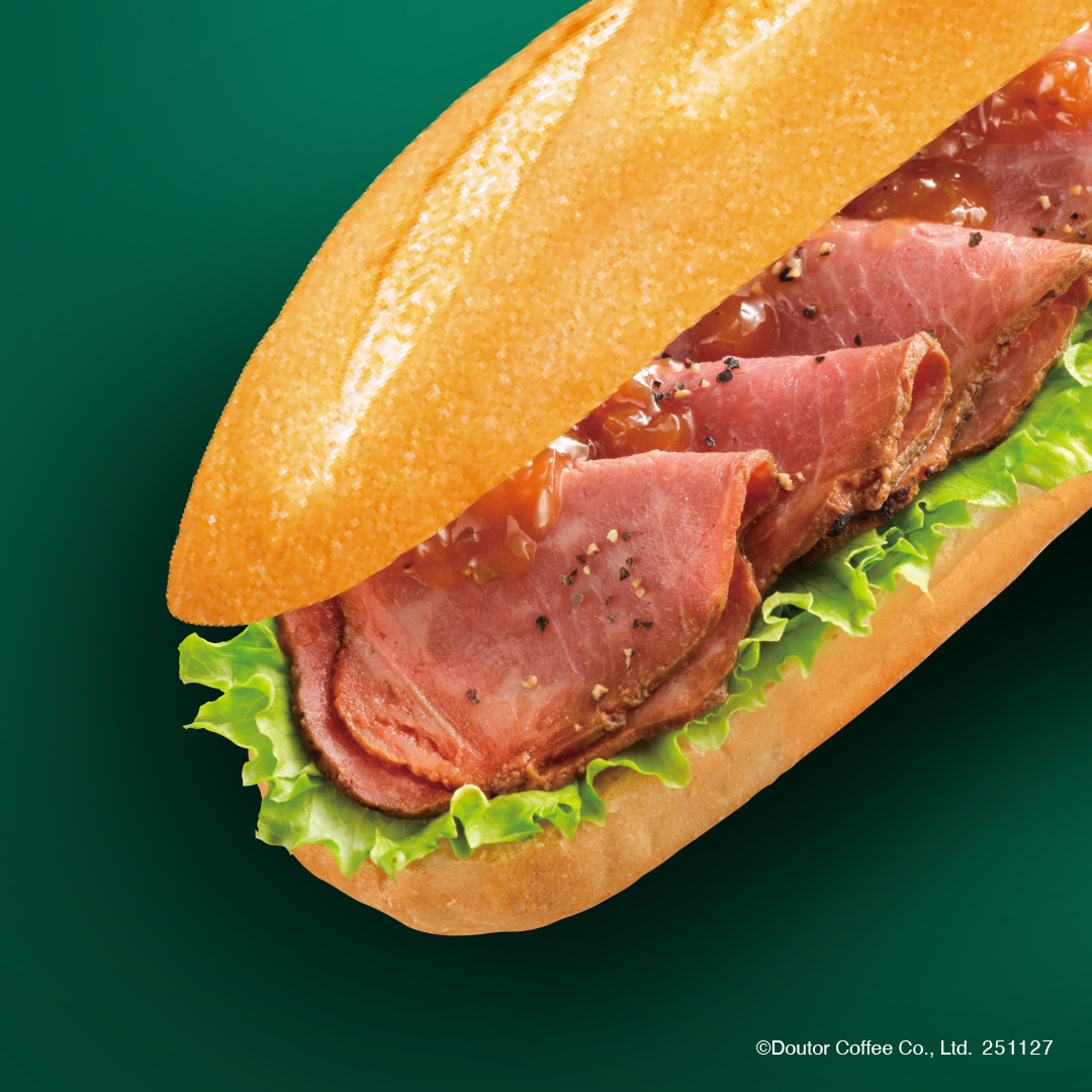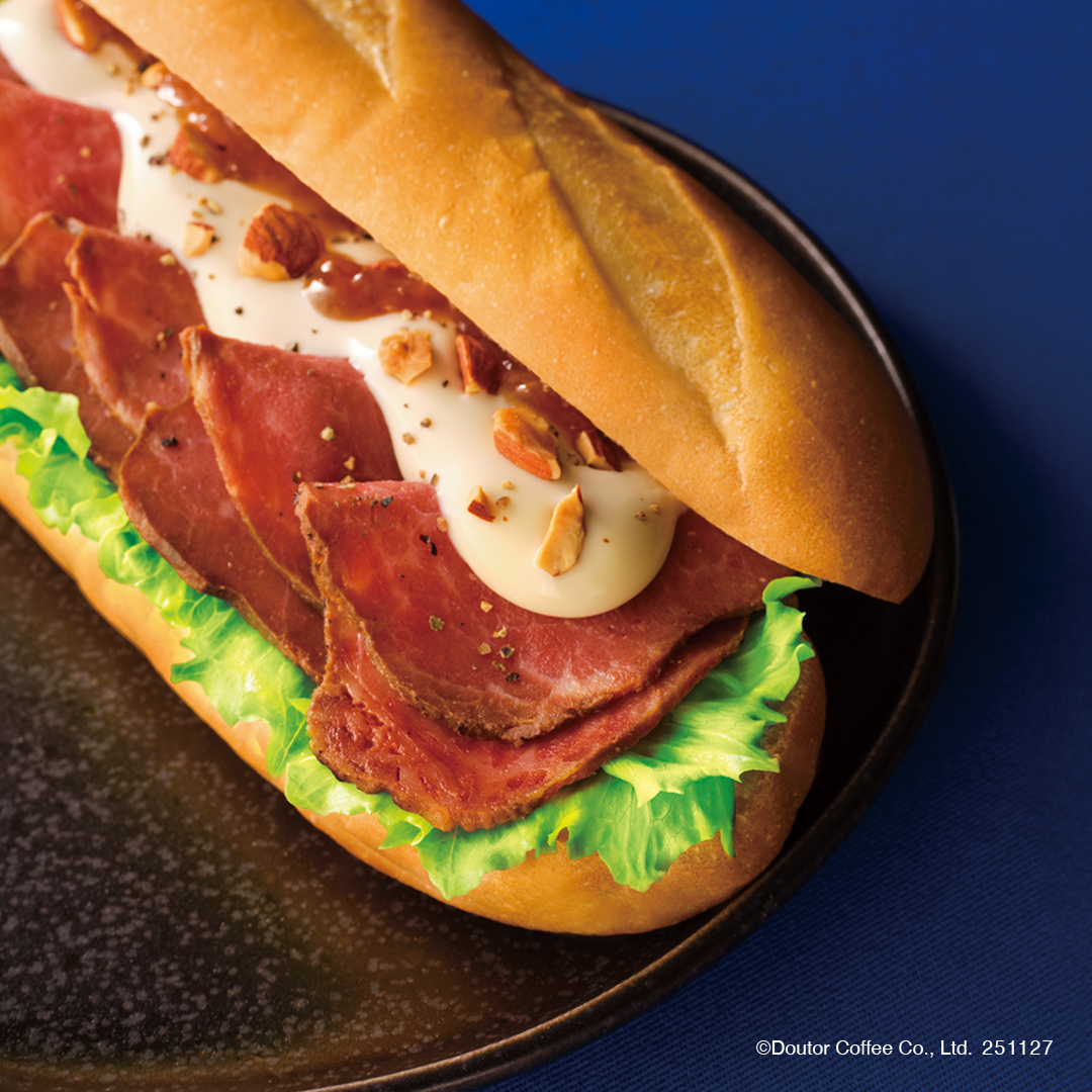 「トリュフ香る ミラノサンド 炭火焼きローストビーフ」「トリュフ香る ミラノサンド 炭火焼きローストビーフ ~カマンベールチーズ~」「トリュフ香る ミラノサンド 炭火焼きローストビーフ~ゴルゴンゾーラソース~ 」、「抹茶キャラメルラテ」「ナッツ香るダブルチョコレートケーキ」